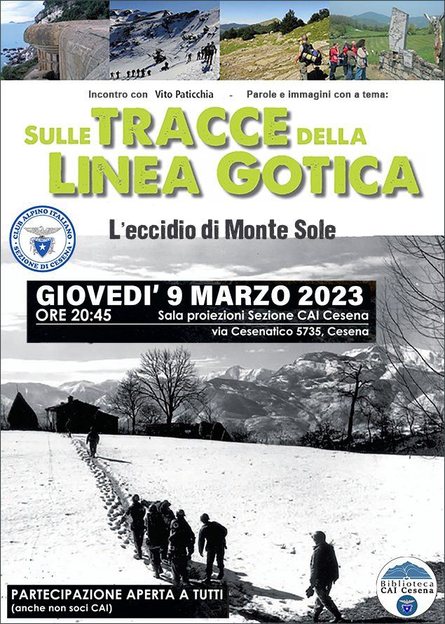 “Sulle tracce della Linea Gotica”: La sera successiva, giovedì 9 marzo alle 20,45, sempre nella sede del Cai, si terrà l’incontro di approfondimento “Sulle tracce della Linea Gotica: l’eccidio di Monte Sole”. Parole e immagini saranno